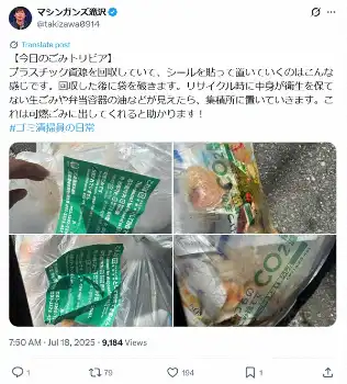 “回収できないプラ資源”を画像公開、ごみ清掃芸人が指南「シールを貼って置いていくのはこんな感じです」