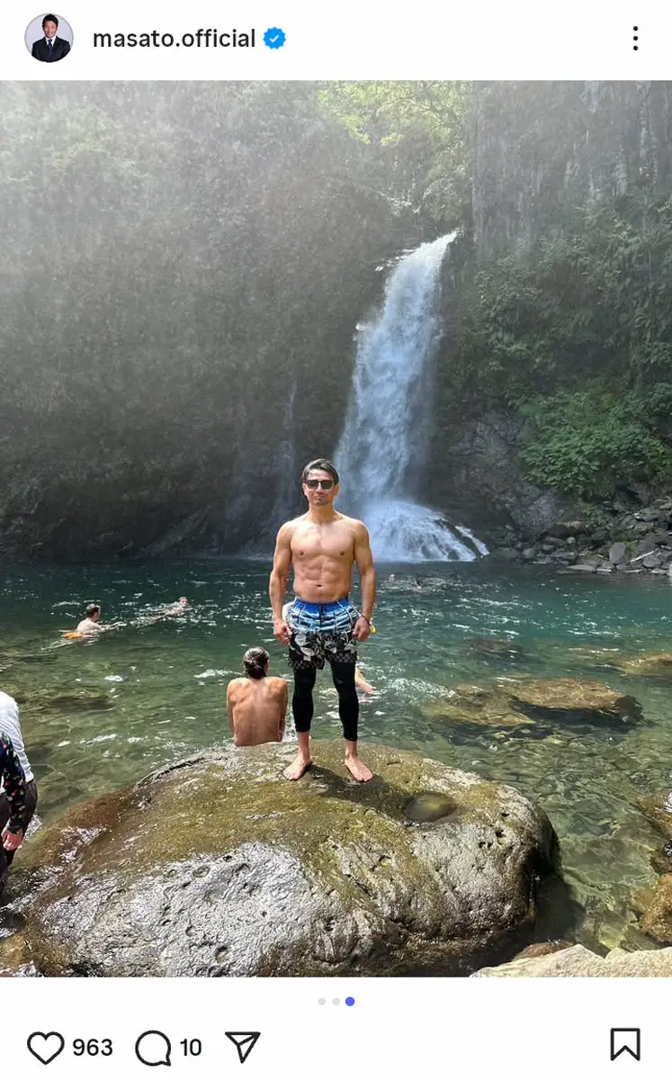 元K―1世界王者でタレントの魔裟斗(46)が21日、自身のインスタグラムを更新。ツーリングで訪れた滝で、鍛え上げたボディを披露した。