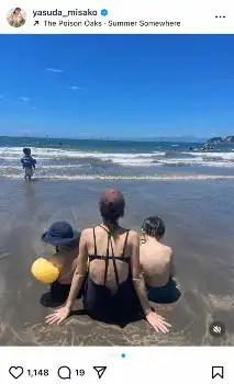 【画像・写真】2児のママ・安田美沙子 ヘルシー水着で家族と海満喫 ファン絶賛「眩しい~」「お茶目で素敵」