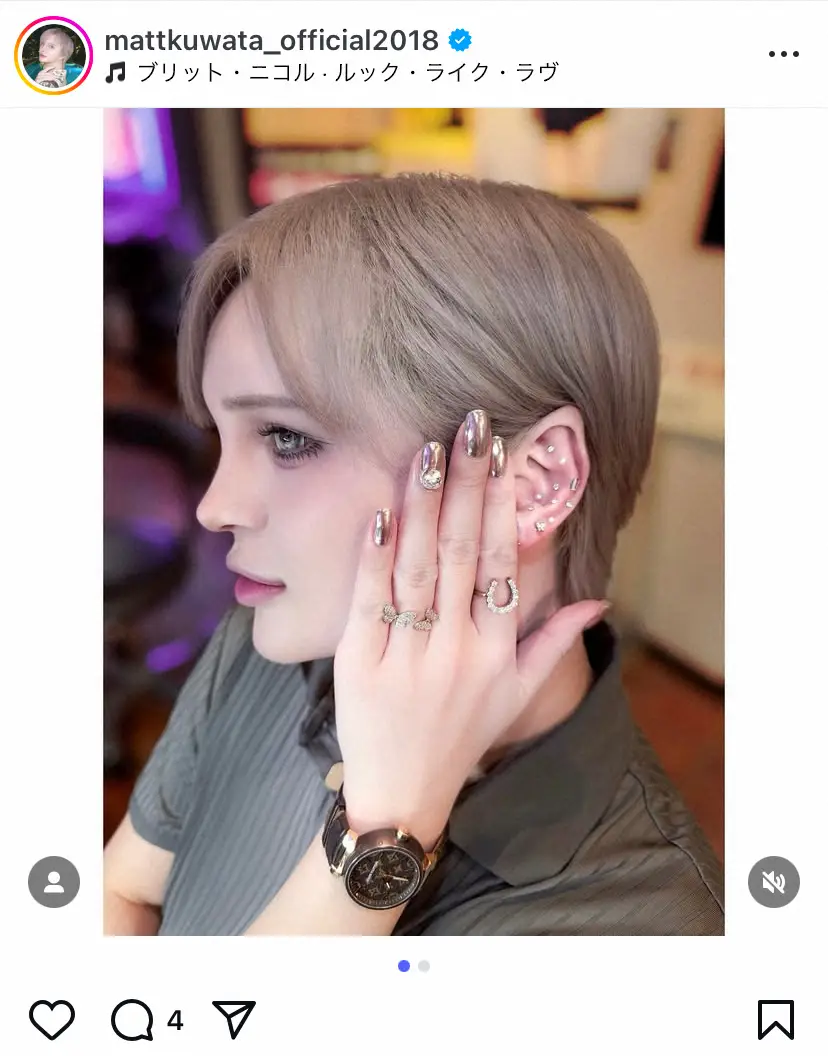 Mattのインスタグラム(@mattkuwata_official2018)から Matt 流行の耳つぼジュエリーに大興奮!横顔ショット&スキャン写真披露… ギャラリーで見る この記事のフォト 2025年07月23日の画像一覧 もっと見る 2025年07月23日の画像をもっと見る