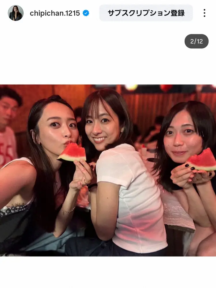 さらにTBSの田村真子アナウンサー、女子プロレスラー上谷沙弥とのスリーショットも公開し、悪役美女レスラーで知られる上谷は“すっぴん風”のナチュラルメイクでスイカを手に笑顔。近藤は「夏を全部詰め込んだような夜でした」とつづった。