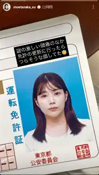 テレビ朝日の田中萌アナウンサー(34)が23日までに自身のインスタグラムのストーリーズを更新。運転免許証の写真を披露した。