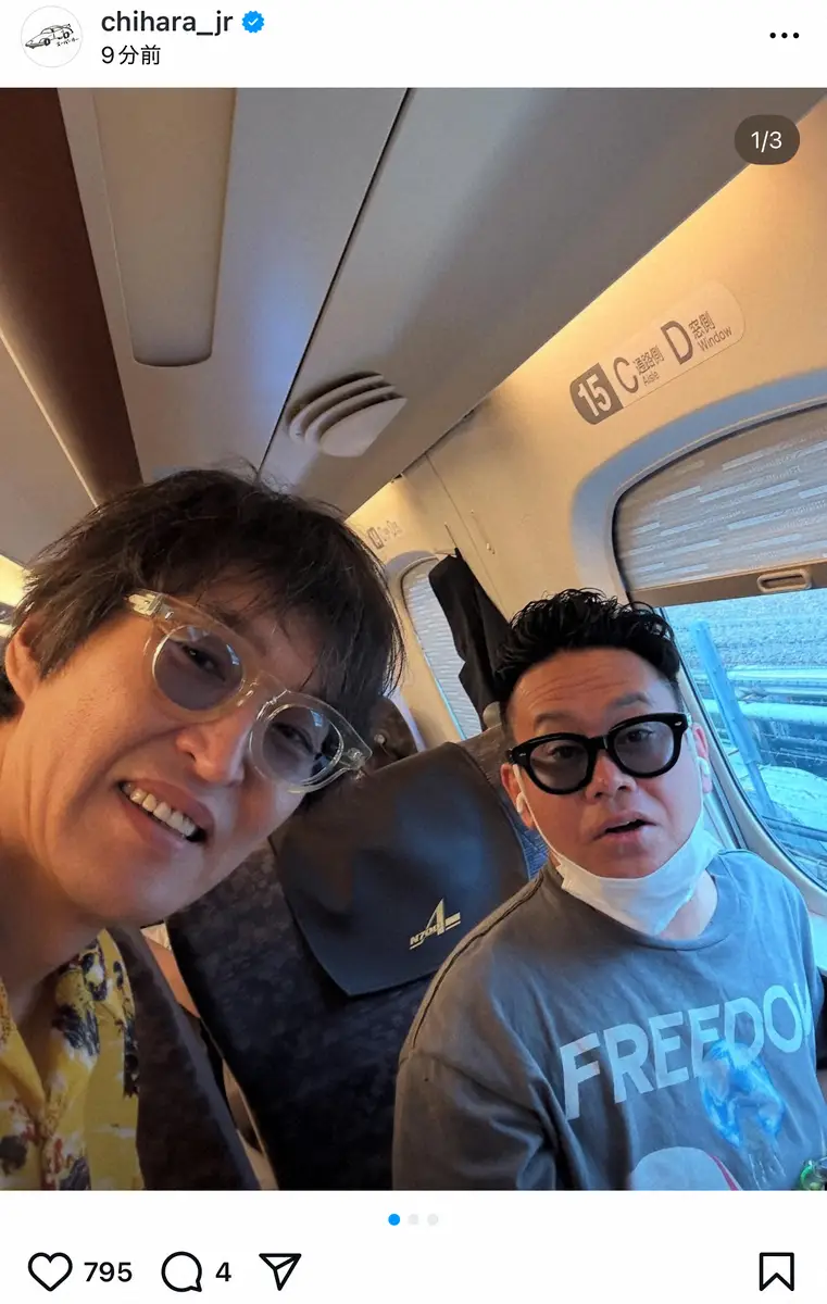 千原ジュニアのインスタグラム(@chihara_jr)から 千原ジュニア 新幹線で人気芸人3人と「ばったり」同じ列に、トイレ前に…… ギャラリーで見る この記事のフォト 2025年07月24日の画像一覧 もっと見る 2025年07月24日の画像をもっと見る