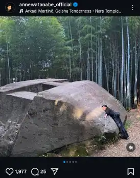 女優の杏が25日までに自身のインスタグラムを更新。奈良・橿原市の“巨石”との2ショットを公開した。