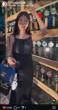 気象予報士でタレントの穂川果音(39)が25日までに自身のインスタグラムを更新。黒キャミワンピ姿の風鈴ショットを披露した。