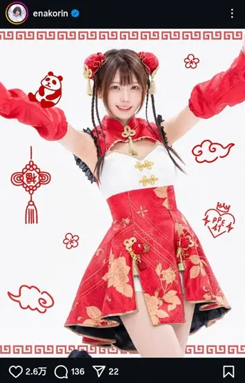 この投稿にフォロワーらからは「いい笑顔」「チャイナ服にお団子ヘアとっても可愛い」「唯一無二のアイドルですね」「えなちゃん可愛い」「めちゃ可愛ぃ過ぎるでしょう」などの声が寄せられている。