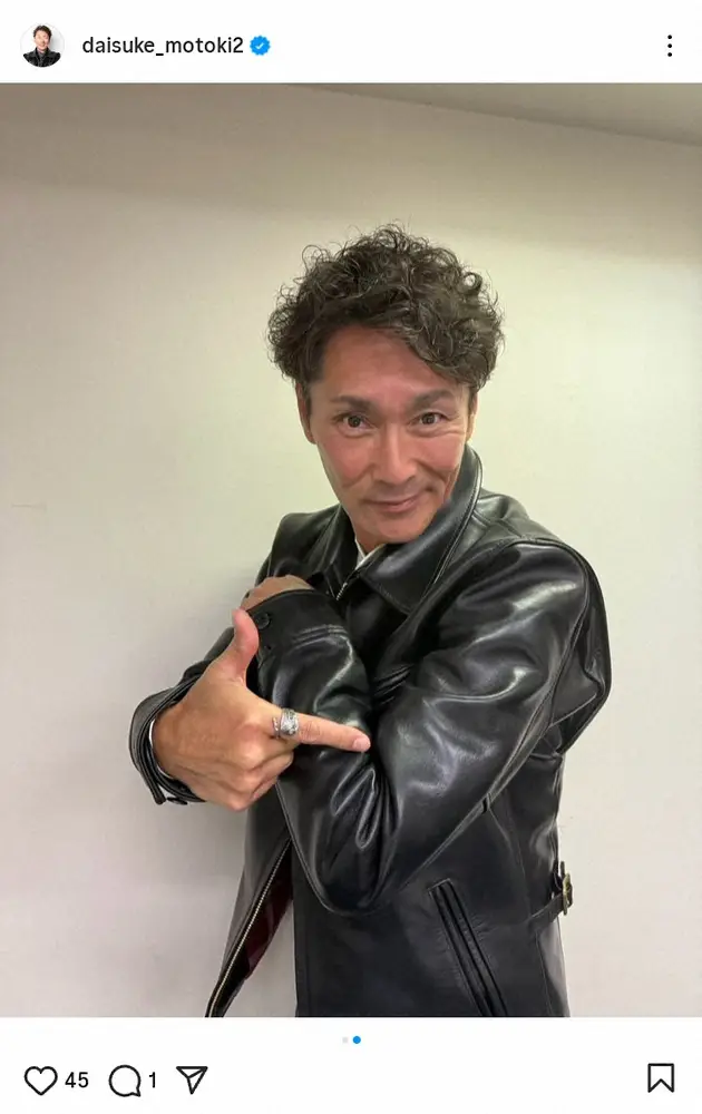 この投稿にフォロワーからは「若い!!」「カッコいいですね」「キマってますね~」「めっちゃイケオジ」「革ジャン似合ってます」「かっこよすぎて保存しました」などの声が集まった。