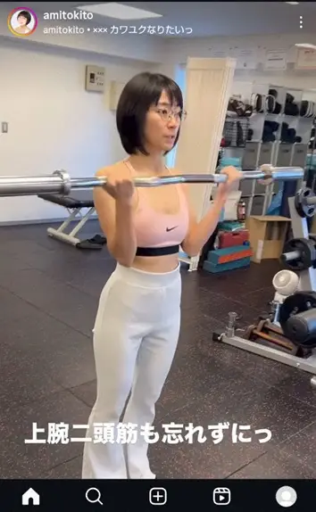 時東ぁみ37歳 ピンクのブラトップ&白パンツでのトレ姿公開に「上腕二頭筋良いね」「美ボディの秘訣」