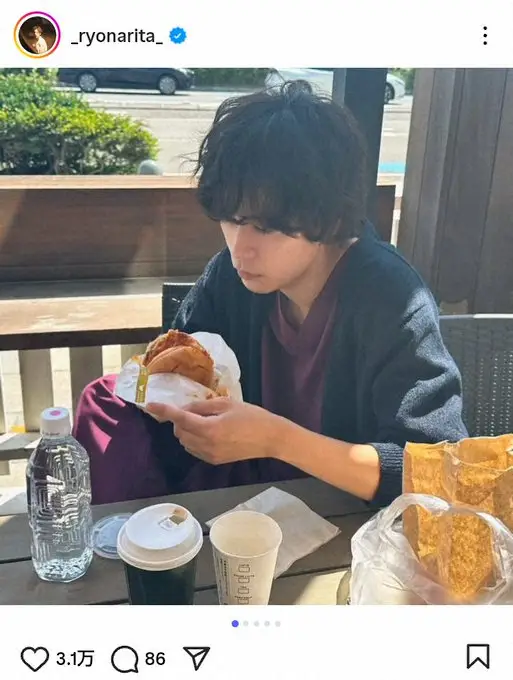 成田凌 「快さん、考える快さん」ハンバーガー見つめる姿にファンくぎ付け「かわいすぎる!」「メロい」