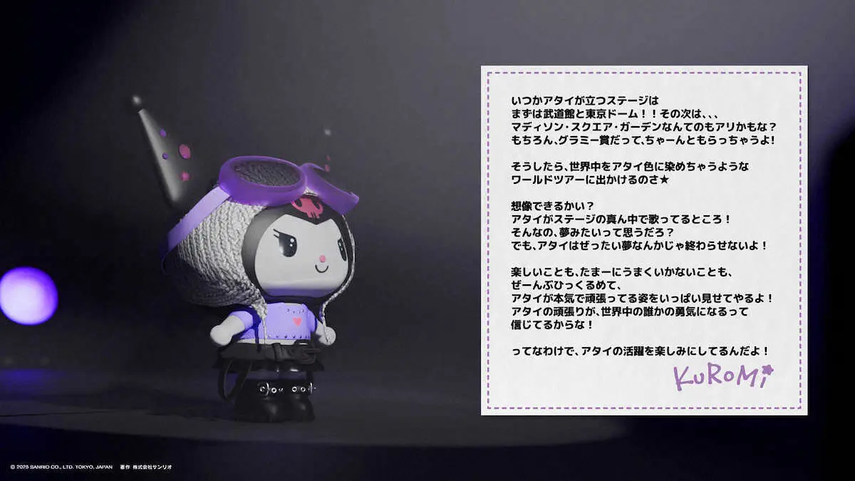「KUROMI IN MY HEAD」ジャケット(C)’25 SANRIO 著作(株)サンリオ Photo by 提供写真 クロミ、メジャーデビュー 「世界クロミ化計画」で人気上昇中 「KUROMI… ギャラリーで見る この記事のフォト 2025年07月31日の画像一覧 もっと見る 2025年07月31日の画像をもっと見る