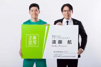 遠藤は会社のイメージカラーであるグリーンのユニホーム姿でCMに登場。建築、住まいづくりへの情熱と信頼を力強く表現していく。