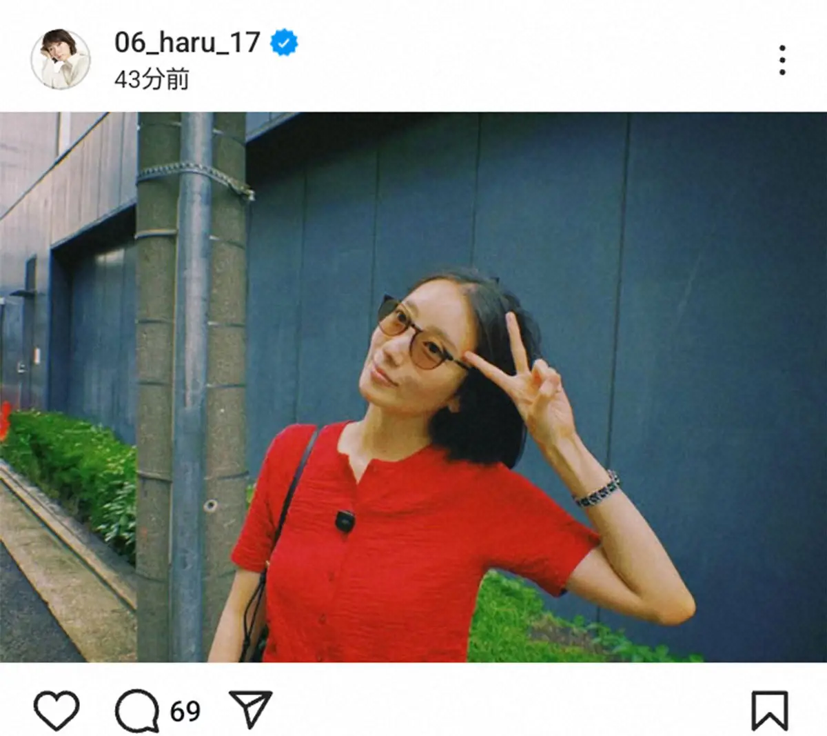 波瑠は「これから始まるドラマ撮影に向けて髪を切りました。ひっくり返りそうな暑さが続いてますが、みんなで頑張るぞー!な気持ちです」とつづり、短くした髪にサングラス姿でピースサインの写真を投稿した。