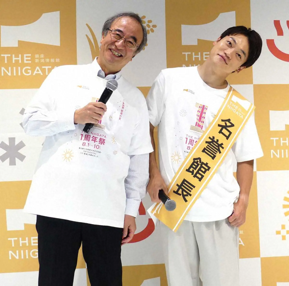 「銀座・新潟情報館 THE NIIGATA」のオープン1周年記念イベントに出席したおばたのお兄さん(右)と花角英世知事 Photo by スポニチ おばたのお兄さん「新潟をよろしくお願いしまーきのっ」 新潟の絶品の酒… ギャラリーで見る この記事のフォト 2025年08月02日の画像一覧 もっと見る 2025年08月02日の画像をもっと見る