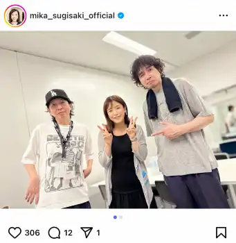 杉崎アナは「さて!6月の写真なので、すっかり時差投稿になってしまいましたが 斉藤和義さんのLIVEに久々に行くことができました~!」と報告。9歳の長男が撮影したという斉藤との集合ショットを投稿した。