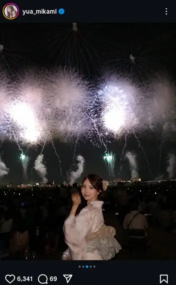 SKE48の元メンバーでタレントの三上悠亜(31)が4日までに自身のインスタグラムを更新。浴衣姿の“長岡まつり大花火”を堪能する姿を公開した。