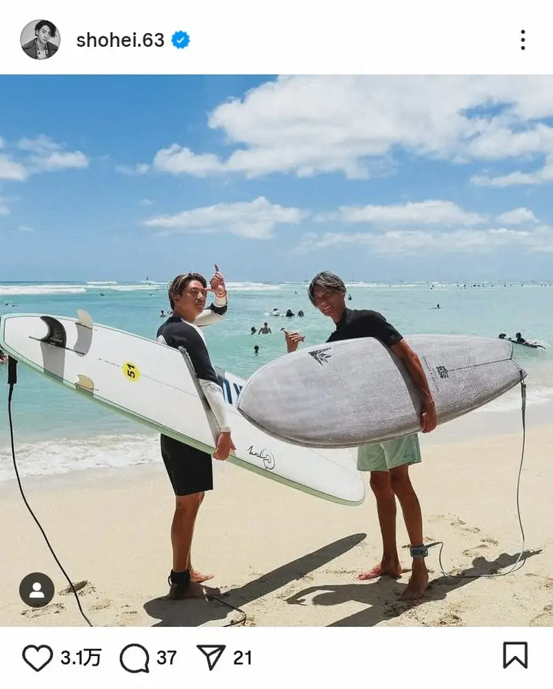 三浦翔平 「スーパースターとお会い出来て」サーフィン満喫2ショットに「凄すぎるツーショット」の声