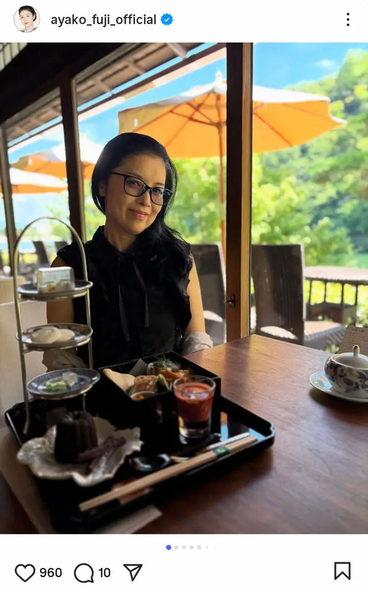 演歌歌手の藤あや子(64)が6日、自身のインスタグラムを更新。夏の京都でアフタヌーンティーなどを満喫したことを報告し、衝撃の顔はめパネル姿を披露した。