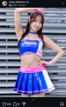 “レース界の聖子ちゃん”霧島聖子 超ミニ!青&白の夏コス姿披露に「見えそうで…」「スタイルいい」