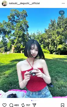 出口夏希 NYでピクニック? 真っ赤なキャミ姿にファンもん絶「本物の女神」「似合いすぎ」
