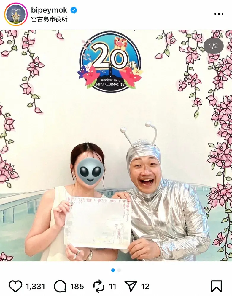 お相手との出会いについては「地球の沖縄の宮古島で出会った」と明かし「僕よりゲラで僕より宇宙人っぽい彼女とこれからも毎日ゲラゲラ笑える家庭を築きたいと思います(笑)(笑)(笑)」などとつづった。