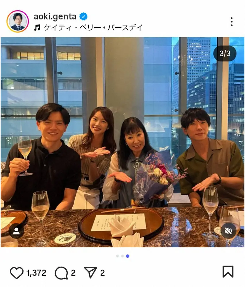 フリーアナウンサーの青木源太(42)が10日までに自身のインスタグラムを更新。大物お笑い芸人の誕生日を祝福したことを明かし、集合ショットを披露した。