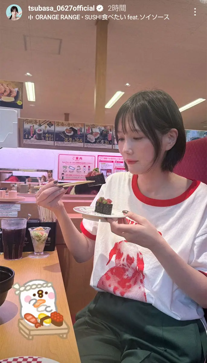 この姿にファンからは「軍艦巻き見つめてるだけでもう優勝してる」などの声が上がっていた。