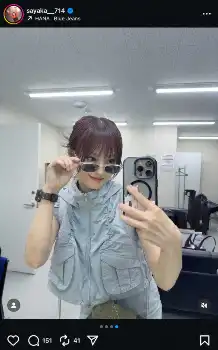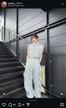 自身のインスタグラムでブルーのノースリーブセットアップコーデ姿やサングラス着用の自撮りショットなどを投稿した。