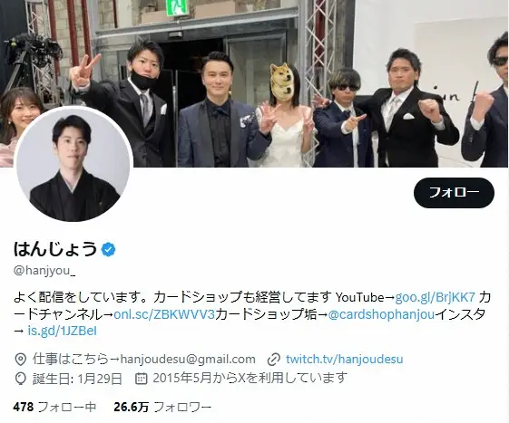 登録者数31万人を超えるゲーム実況ユーチューバーで、秋葉原のカードショップ「はんじょう」のオーナーである「はんじょう」が12日、自身のYouTubeチャンネルを更新。反社会的勢力との関わりを否定した。