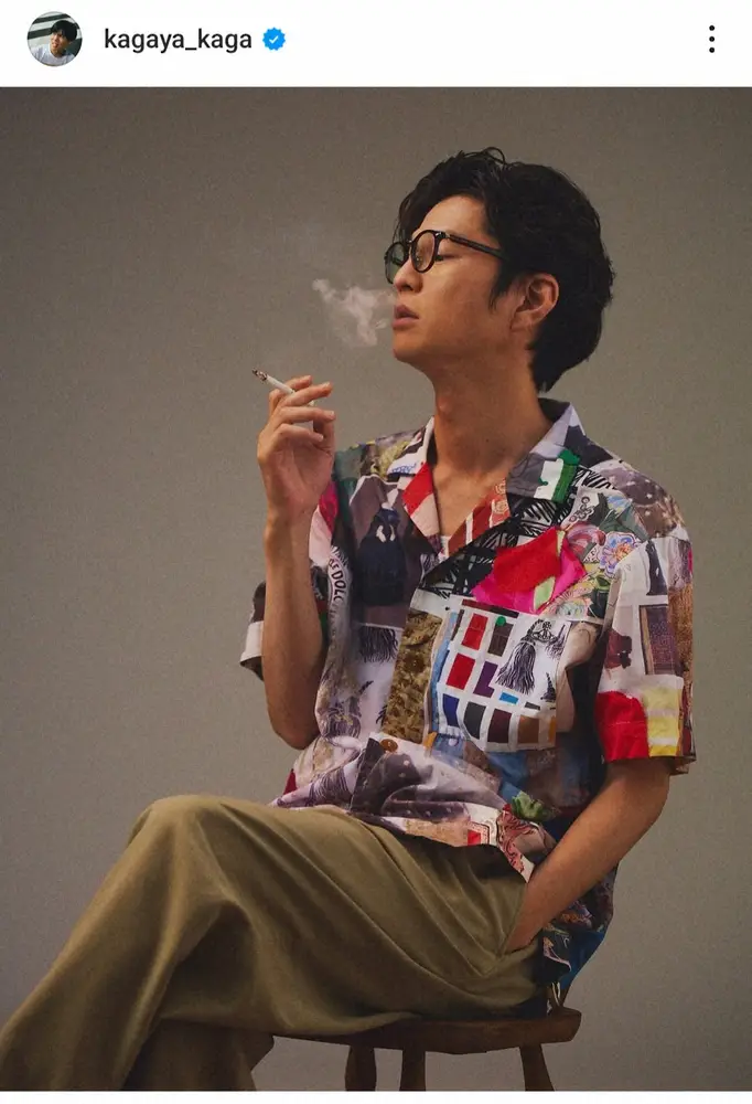 この投稿にフォロワーからは「超、超、カッコいいですね!!??」「これはヤバい」「超ビジュいい」「気怠さと色気があってかっこいいです」「直視できないぐらい色っぽい」「煙草似合いすぎる」「ほんといい男」「いい写真すぎる!!」「既に悶絶しております」「引き出す加賀さんもさすが」などの声が寄せられている。