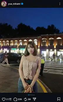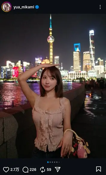 SKE48の元メンバーでタレントの三上悠亜(31)が13日までに自身のインスタグラムを更新。ピンクノースリーブ姿での上海夜景ショットを公開した。
