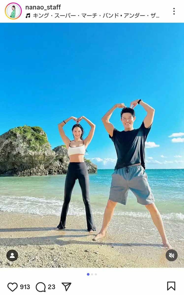 【画像・写真】菜々緒 共演俳優とビーチで全力ポージング!フォロワー感嘆「スタイル抜群」「足が長い」「カッコいい」