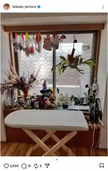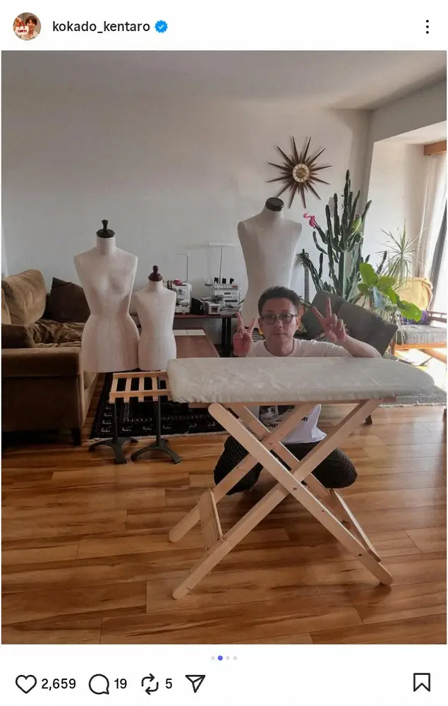 43歳の時にミシンを使った裁縫にどハマりし、趣味でトートバッグやシャツまで作っているコカド。この日は「つぼっちからの誕生日プレゼント、今年はアイロン台をもらいました!」と報告。お笑いトリオ「我が家」の坪倉由幸から贈られたというアイロン台の写真を公開した。