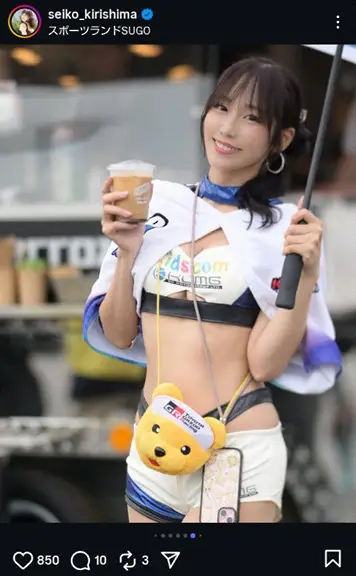 “レース界の聖子ちゃん”霧島聖子 セパレートの夏コス姿披露に「チームが勝つように祈る姿が尊い!」