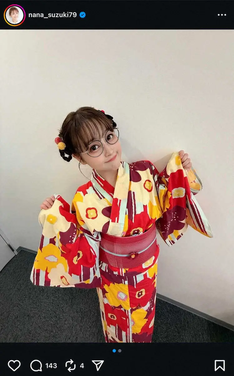 タレント鈴木奈々(37)が18日までに自身のインスタグラムを更新。今年初の浴衣姿を投稿した。