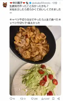中川翔子 初めての手作り生姜焼きは自賛の出来も…「人生で食べたキャベツ千切りで1番太かった」」と報告