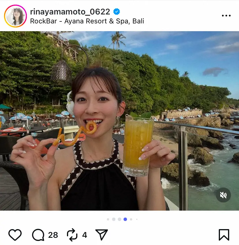 元TBSでフリーアナウンサーの山本里菜アナウンサー(31)が19日、自身のインスタグラムを更新。南国でのバカンスショットを公開した。