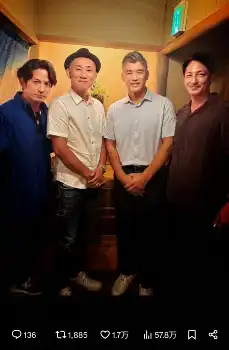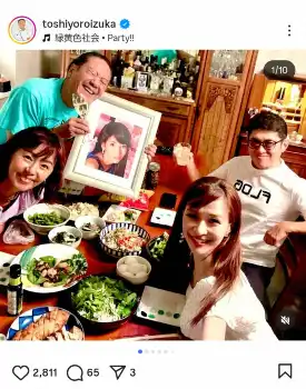 鎧塚俊彦氏 「いつものメンバーで我が家でホームパーティー!」人気タレントらと4ショットに「楽しそう」