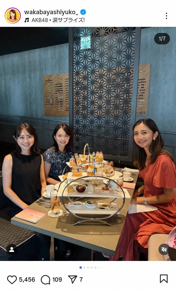 TBSの若林有子アナウンサー(29)が23日までに自身のインスタグラムを更新。同期アナとのアフタヌーンティー満喫ショットを披露した。