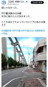 沖縄ナビ公式X(@okinawa_nv)から 沖縄在住の漫画家・空えぐみ氏 甲子園決勝の試合中街から“人が消えた”現… ギャラリーで見る この記事のフォト 2025年08月23日の画像一覧 もっと見る 2025年08月23日の画像をもっと見る