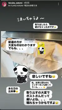 手塚は、PLANETARIUMの「残念なお知らせ」をBGMに「ある日の出来事」としてポストに無理やり入れられた配達物の写真を披露。