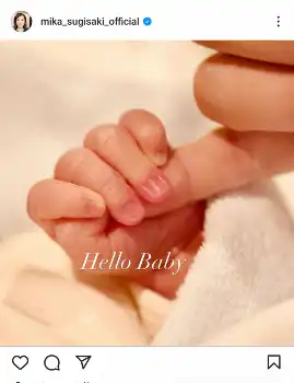 杉崎は「Hello Baby」と書かれた新生児の手を写真をアップし、「先日、3000gを超える元気な男の子を無事に出産致しました!母子ともに健康です」と報告。「あまりに元気いっぱいな産声を聞いた時は、ほっとして涙がポロポロ出てきました」と感動をつづった。