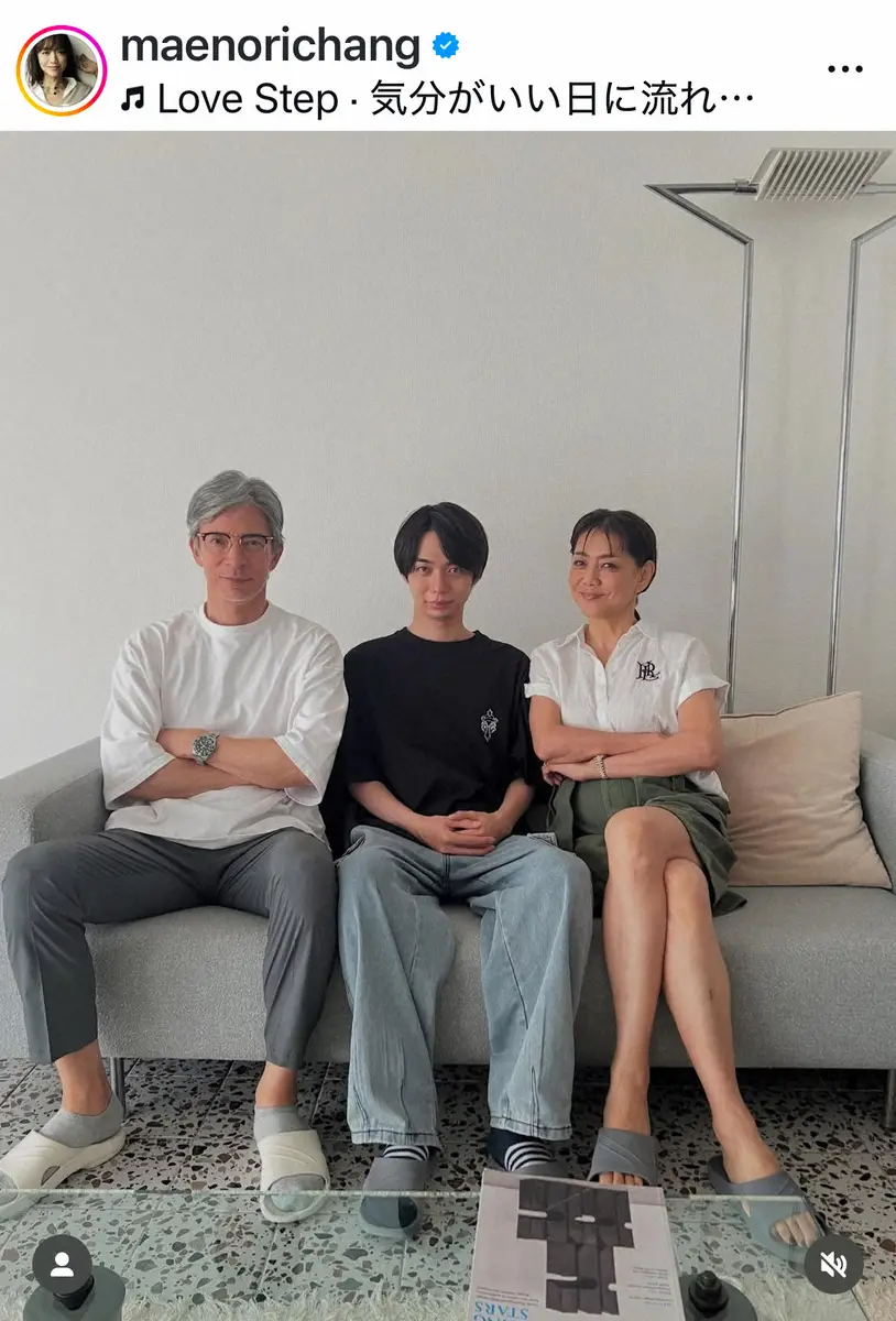 “マエノリ”こと、モデルの前田典子(59)が26日、自身のインスタグラムを更新。夫でモデル・俳優の日比野玲(64)とモデルの山口リュウ(25)との家族ショットを披露した。