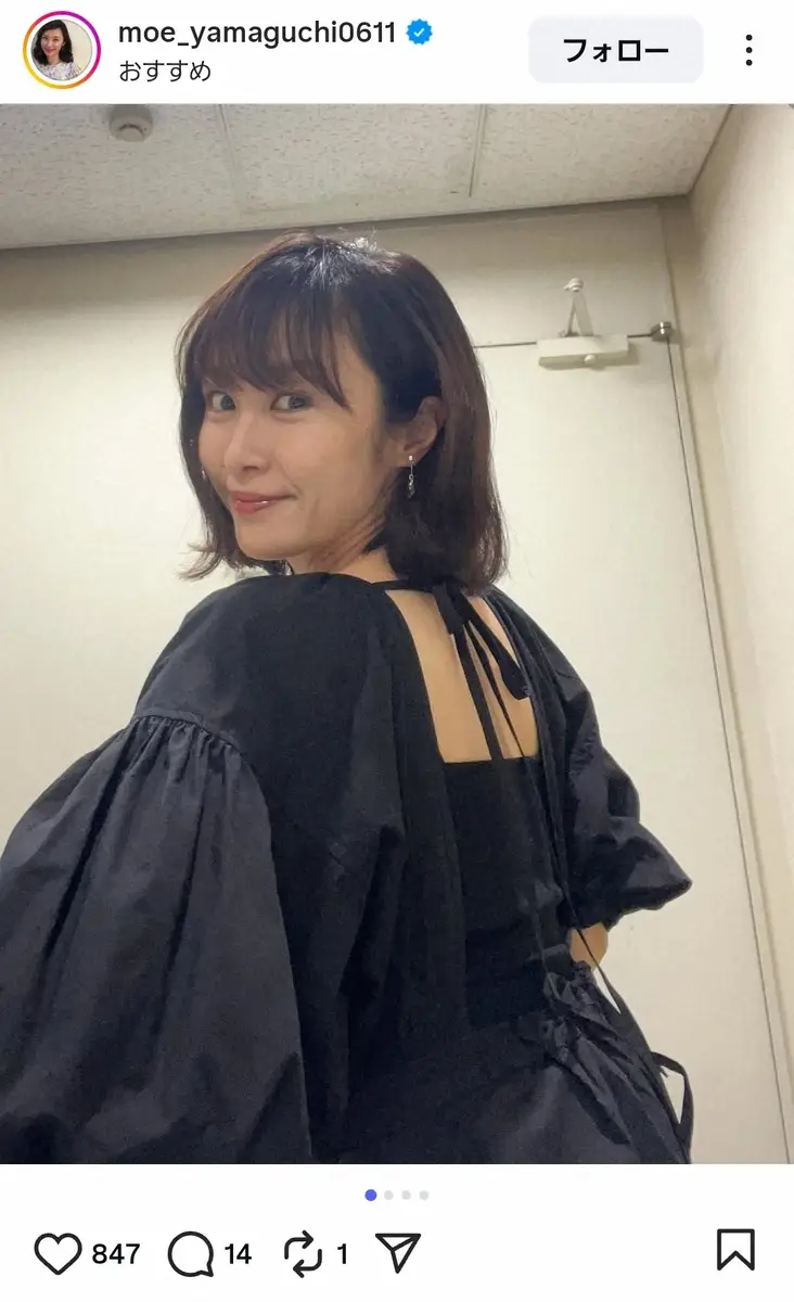 48歳・山口もえ 「せ、せ、背中が…」“艶やか黒ワンピ”姿にファン「綺麗」「もえちゃん似合う」