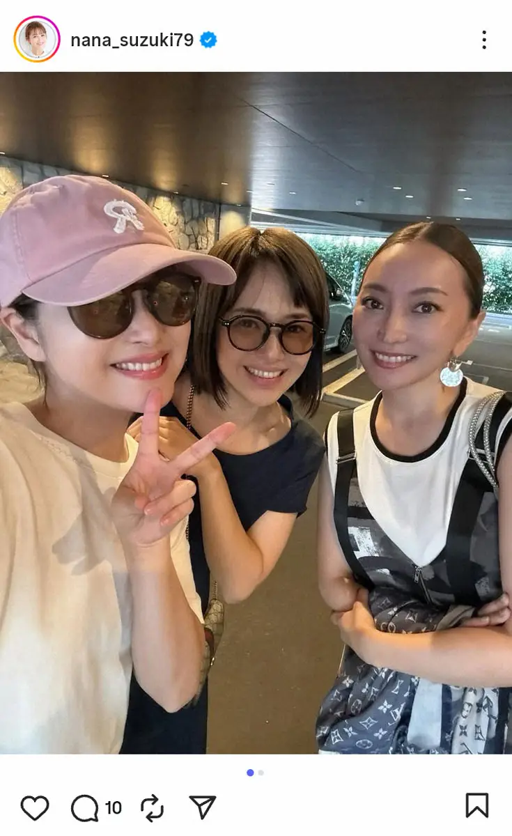 タレントの鈴木奈々(37)が27日、自身のインスタグラムを更新。タレントの加藤綾菜(37)、タレントの蒼井そらとの3ショットを公開した。