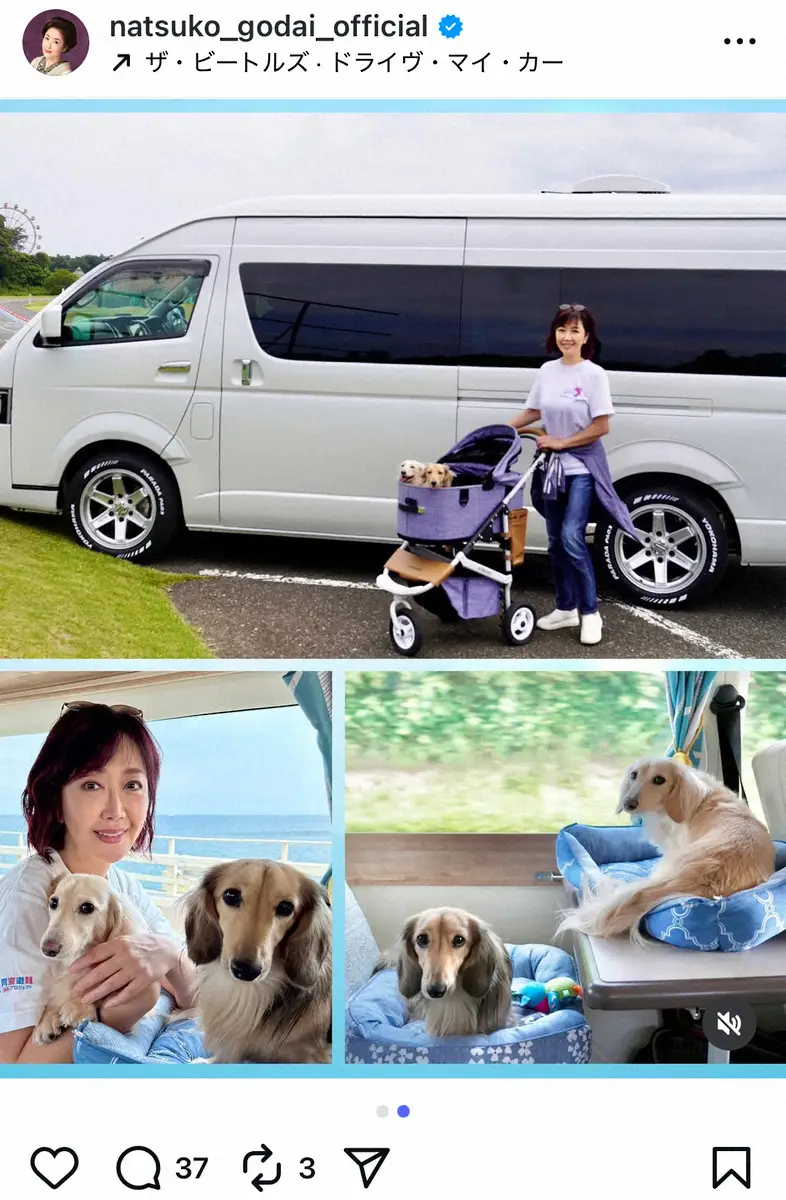 伍代夏子公式インスタグラム(@natsuko_godai_official)から 伍代夏子 どデカい新車で「家族ドライブ」報告 夫・杉良太郎81歳の近影… ギャラリーで見る この記事のフォト 2025年08月28日の画像一覧 もっと見る 2025年08月28日の画像をもっと見る