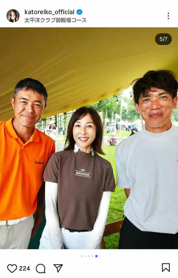 タレントのかとうれいこ(56)が28日、自身のインスタグラムを更新。シニアツアーのプロアマ大会でのショットを披露した。