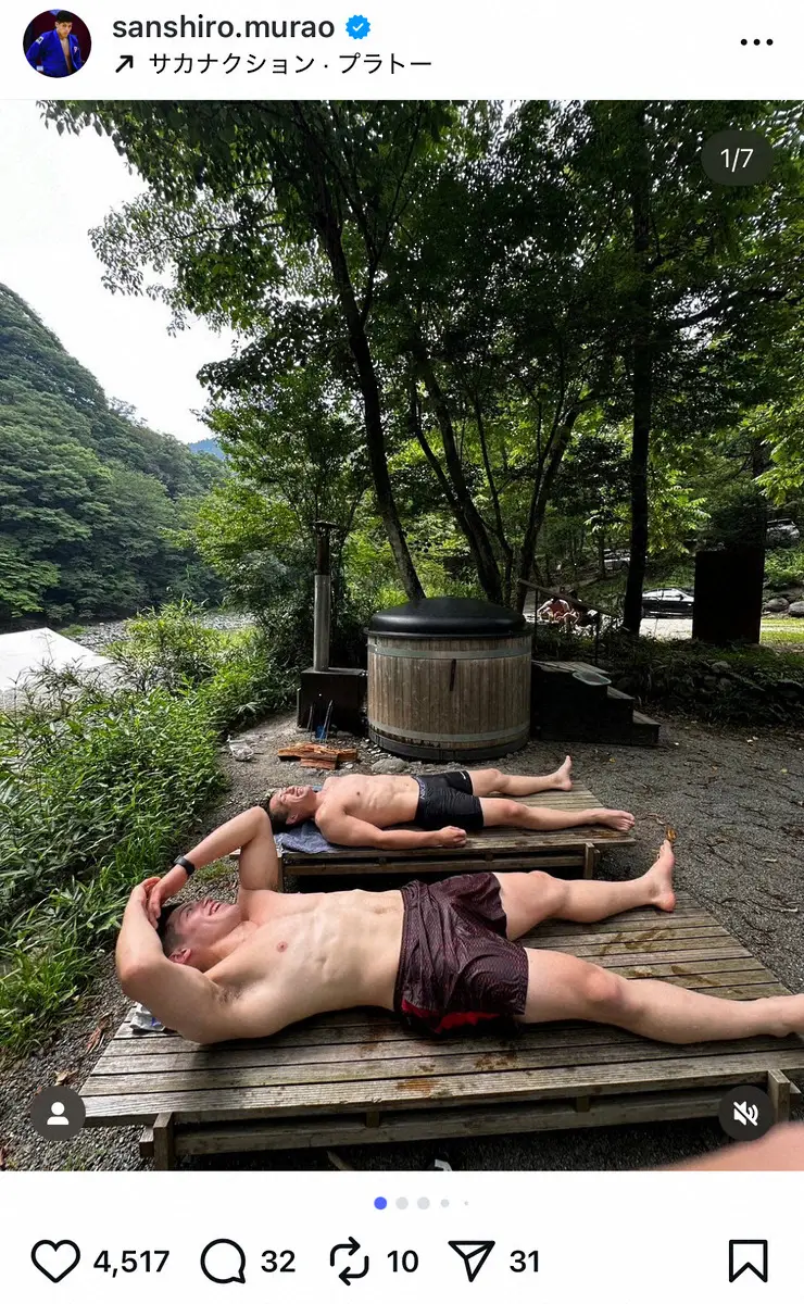 柔道・村尾三四郎 「川サウナ」オフSにファン歓喜 「画力強すぎ」「筋肉の圧…!」「眼福眼福」