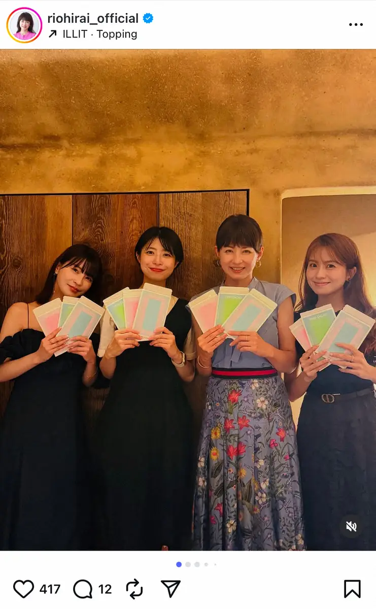 元フジテレビでフリーアナウンサーの平井理央(42)が29日、自身のインスタグラムを更新。女優やタレントとの集合ショットを公開した。