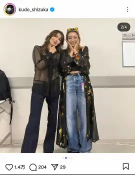 工藤静香 コンサートに人気歌手が訪れサプライズ! 仲良し2ショット披露に「2人とも可愛い」の声