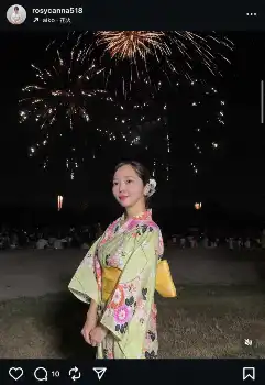 ABEMA人気アナ 花火を背景に夏を感じる浴衣姿!「美肌美人」「浴衣姿可愛すぎ!」の声